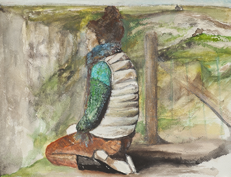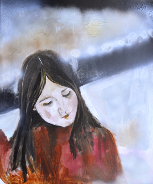 A soul essence painting of my childhood. She came through and doesn't want to talk...save for the finger. She has a sense of humor and is working on how to have boundaries. She's defensive and ... more ...